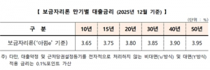 Korea Housing Finance Corporation holds Bogeumjari Loan rates steady for December at 3.65–3.95% annually, with preferential rates for eligible groups as low as 2.65%.
