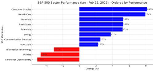 Consumer staples are often perceived as defensive stocks, as they guarantee steady demand even in situations of increased economic uncertainty and weakened consumer sentiment. However, with the increased preference for risk assets in the early days of the Trump administration, demand for defensive stocks was not significant. Furthermore, future negative impacts are anticipated due to rising import costs from widespread tariff impositions.