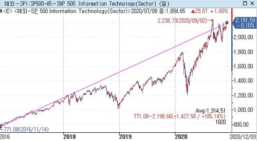 The information technology (IT) sector index, which had led the US stock market rally for the past two years, fell over 3% this year, showing relatively poor performance.