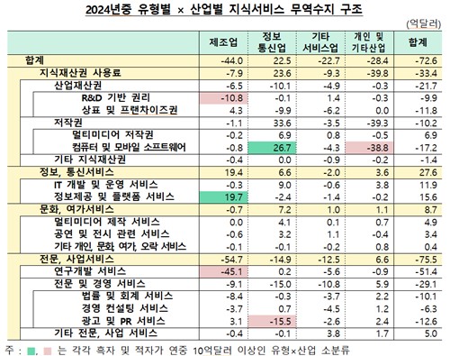 (Seoul=Yonhap Infomax) Jee Hyun Son = The Bank of Korea (BOK) reported that South Korea's knowledge service trade recorded a deficit of $7.26 billion last year.
