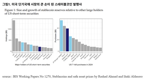 According to a Bank for International Settlements (BIS) report published in May, the volume of US short-term Treasuries held by dollar stablecoin issuers such as Tether (USDT) and Circle (USDC) now exceeds that held by China. In terms of net increases in US short-term Treasuries during 2024, stablecoin issuers ranked third after JPMorgan GMMF and China.