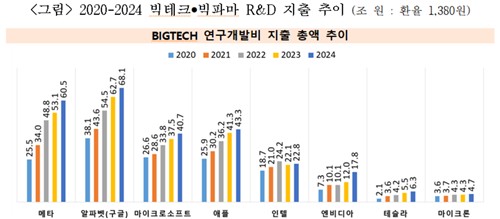 In 2024, Meta Platforms Inc. and Alphabet Inc. (Google) spent 60.5 trillion won ($45.7 billion) and 68.1 trillion won ($51.5 billion), respectively, on R&D. For comparison, South Korea's 2024 defense budget is about 61.6 trillion won ($46.5 billion). Combined R&D spending by Meta, Alphabet, Microsoft Corp., Intel Corp., NVIDIA Corp., Tesla Inc., and Micron Technology Inc. totals approximately 264 trillion won ($199.7 billion) in 2024. The top eight "Big Pharma" companies spent a combined 128 trillion won ($96.9 billion) on R&D. While the bill limits benefits to domestic R&D activities and prohibits double-dipping, the ability for thousands of companies to immediately expense over 1,000 trillion won ($756 billion) in R&D costs represents an unprecedented advantage.
