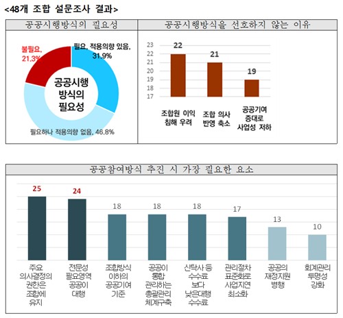 JUSAN Research Institute revealed that, based on a survey conducted this month of 48 redevelopment project committees and association executives in Seoul, 78.7% said public participation is necessary. However, only 31.9% said they would actually apply the public implementation model already in place.