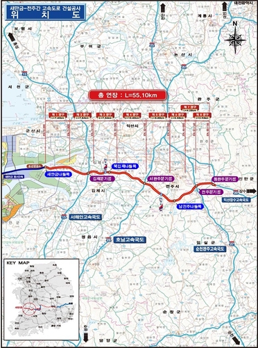 The Ministry of Land, Infrastructure and Transport and Korea Expressway Corporation announced on the 20th that the 55.1km Saemangeum-Jeonju Expressway, connecting Jinbong-myeon in Gimje City, passing through Jeonju City, and linking to Sangwan-myeon in Wanju County, Jeollabuk-do, will open at 10:00 AM KST on the 22nd.