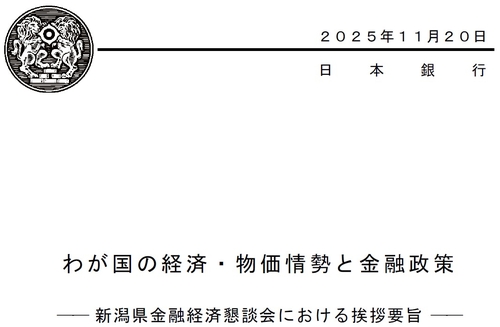 Speaking at a financial and economic roundtable in Niigata Prefecture on the 20th, Koeda addressed Japan’s economic and price conditions as well as monetary policy.