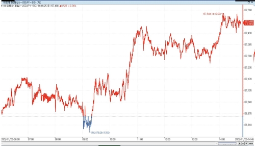 According to Yonhap Infomax (screen number 6411), as of 14:46 local time, the dollar-yen was trading at 157.488 yen, up 0.34% from the previous session.