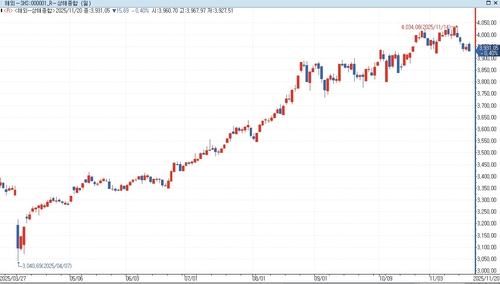 According to the Yonhap Infomax Global Stock Index (Screen No. 6511), the Shanghai Composite Index ended at 3,931.05, down 15.69 points (0.40%) from the previous session.