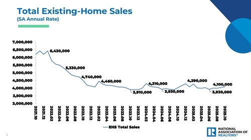 According to the National Association of Realtors (NAR) on the 20th (local time), seasonally adjusted existing home sales in the US rose 1.2% in October from the previous month to an annualized rate of 4.10 million units.