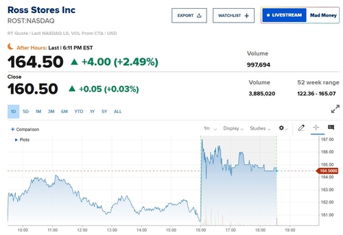 Following the robust third-quarter results, Ross Stores shares rose $4.00 (2.49%) to $164.50 in after-hours trading.