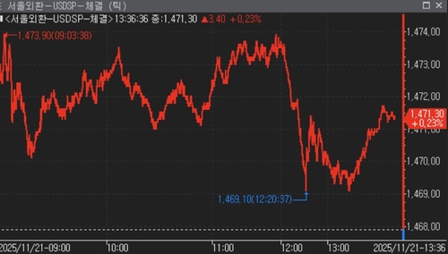 As of 13:36 KST on November 21, the dollar-won was trading at 1,471.30 won, up 3.40 won from the previous session.