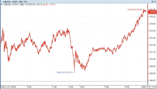 On November 21, the dollar-won closed regular trading at 1,475.60, up 7.70 won from the previous session, according to the Seoul foreign exchange market at 15:30 KST.