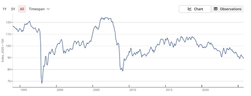 The REER index has been on a steady downward trend since peaking at 107.94 in September 2018.