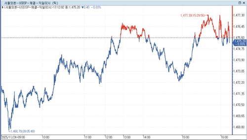 As of 17:13 KST on the 24th, the dollar-won rate stood at 1,475.40 won, down 0.20 won from the previous session, according to the foreign exchange market.