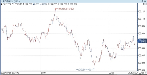 According to Yonhap Infomax (screen number 6411), as of 08:20 AM US Eastern Time on the 24th, the dollar index (DXY), which measures the value of the dollar against six major currencies, stood at 100.060, down 0.097 points (0.097%) from the previous close of 100.157.