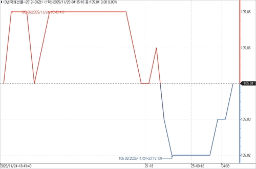 According to the Seoul bond market on the 25th, the 3-year government bond futures closed at 105.84 in overnight trading, up 3 ticks from the previous day’s regular session close. Foreign investors and financial institutions were net buyers of 18 and 14 contracts, respectively, while individuals were net sellers of 32 contracts.