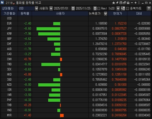 Among Asian currencies, those experiencing the sharpest declines share a common factor: direct exposure to US tariff actions. Countries with high export dependence, such as South Korea, Japan, and Taiwan, have seen their currencies weaken markedly as they agreed to lower tariffs in exchange for large-scale investments in the US.