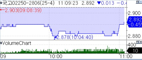 According to the Seoul bond market, as of 11:06 AM KST, the yield on the three-year government bond stood at 2.890%, down 1.5 basis points from the previous session’s private sector assessment. The 10-year yield dropped 3.5 basis points to 3.255%.