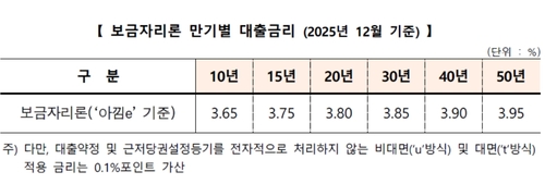 Accordingly, the “Akkim-e Bogeumjari Loan” will continue to offer annual interest rates ranging from 3.65% (10-year term) to 3.95% (50-year term).