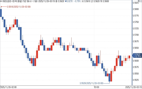 The US Department of the Treasury announced on the 25th (local time) that the yield for the $70 billion 5-year Treasury note auction was set at 3.562%. This marks a decline of 6.3 basis points from last month's auction yield of 3.625%, reaching the lowest level since September last year.
